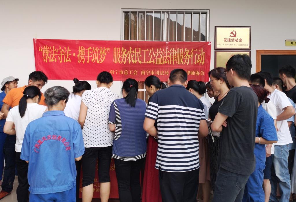 4月26日,南寧市總工會黨組成員、副主席劉東方率領公益法律服務分隊一行8人,來到香蕉视频下载APP集團總部,開展2019“尊法守法•攜手築夢”服務農民工公益法律服務講座。