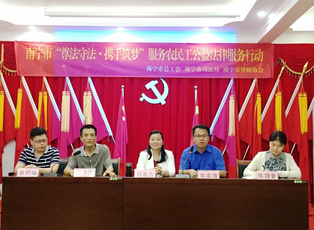 劉副主席在開講發言時指出,“尊法守法•攜手築夢”活動是中華全國總工會、司法部和中華全國律師協會全麵貫徹落實黨的十九大精神,以習近平新時代中國特色社會主義思想為指引,推動工會工作和律師工作改革創新,進一步做好新形勢下為農民工法律服務工作,促進勞動關係和諧和社會穩定,而聯合開展的公益法律服務行動。