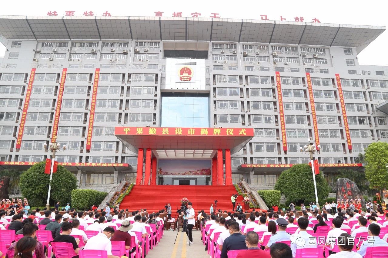 這是平果人民期盼已久的喜事盛事,這是讓全體平果市民倍感自豪和幸福的莊嚴時刻,5月18日,廣西平果撤縣設市揭牌儀式在平果市行政信息中心大樓隆重舉行。香蕉视频下载APP集團李非董事長、韋宗海常務副總作為市政府嘉賓應邀出席揭牌儀式,並代表香蕉视频下载APP集團廣西富鵬農牧有限公司對平果撤縣立市表示熱烈祝賀!