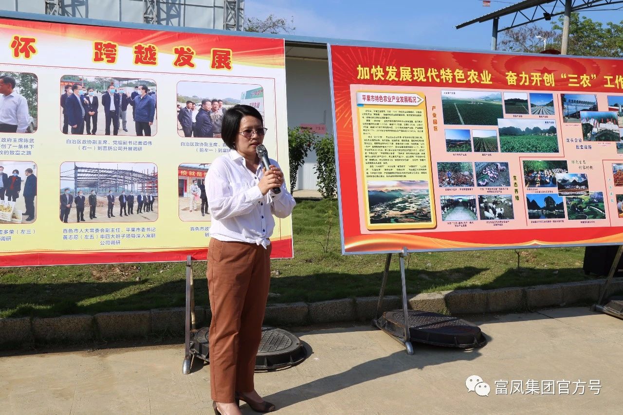 ▲平果市農業農村局黃紅豔局長向參訪嘉賓介紹平果市特色農業產業發展新成就
