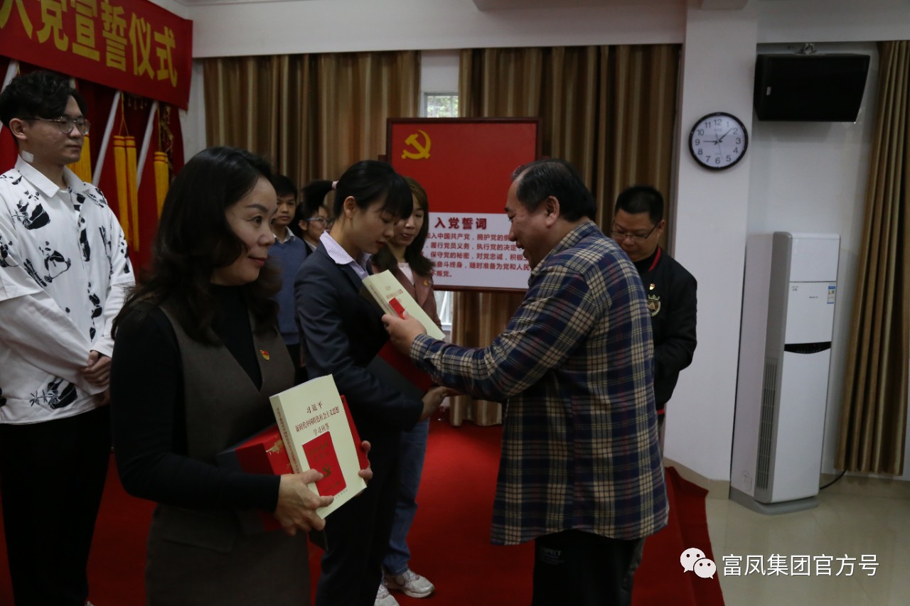 ▲何文書記、鍾健書記及各黨委委員為新黨員頒發黨員證,贈送中國共產黨成立100周年紀念品及黨史學習讀本,佩帶黨徽。
