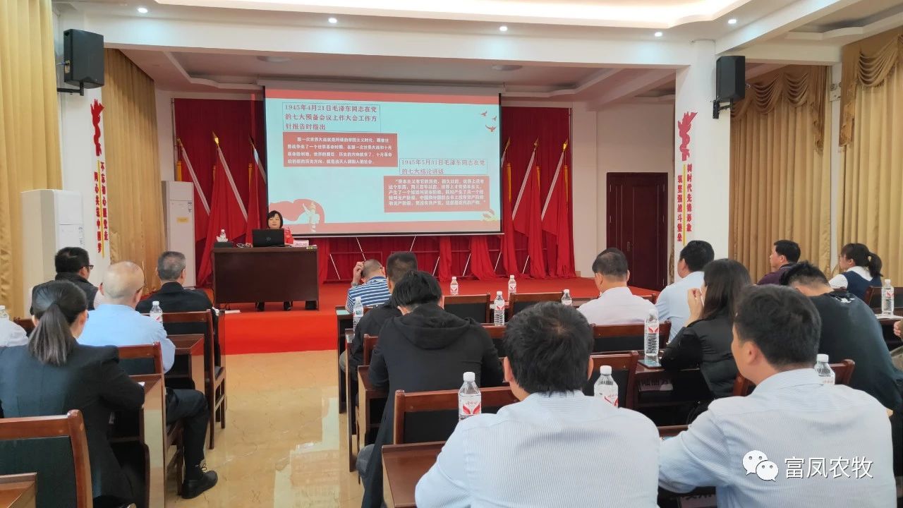 授牌儀式前,大富華農公司黨支部全體黨員及出席授牌儀式人員在黨員活動中心開展黨史學習專題黨課。盧鳳玲副部長書記生動形象講授了從百年曆史看黨的初心和使命,提升了黨員的思想認識,增強了黨性修養。