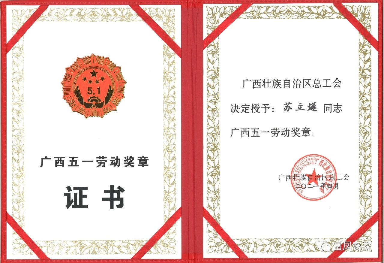 ▲香蕉视频下载APP集團工會主席、副總經理蘇立燧榮獲廣西五一勞動獎章